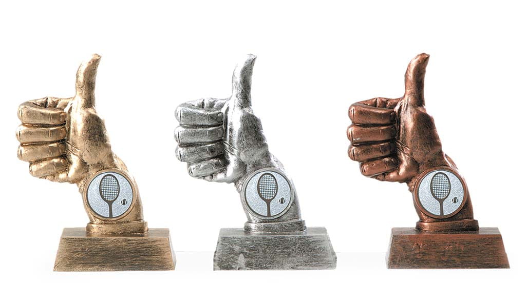 Beeld ‘duim’ verkrijgbaar in goud-, zilver- en bronskleur.