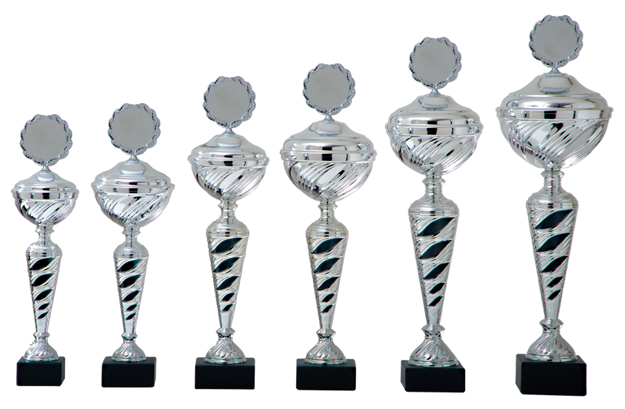 Beker met zilverkleurige metalen cup en zilverkleurig kunststof tussenstuk met zwart accenten.