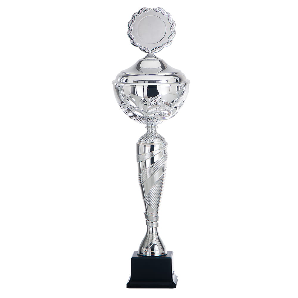 Beker met metalen cup, topstuk en kunststof tussenstuk in zilverkleur.