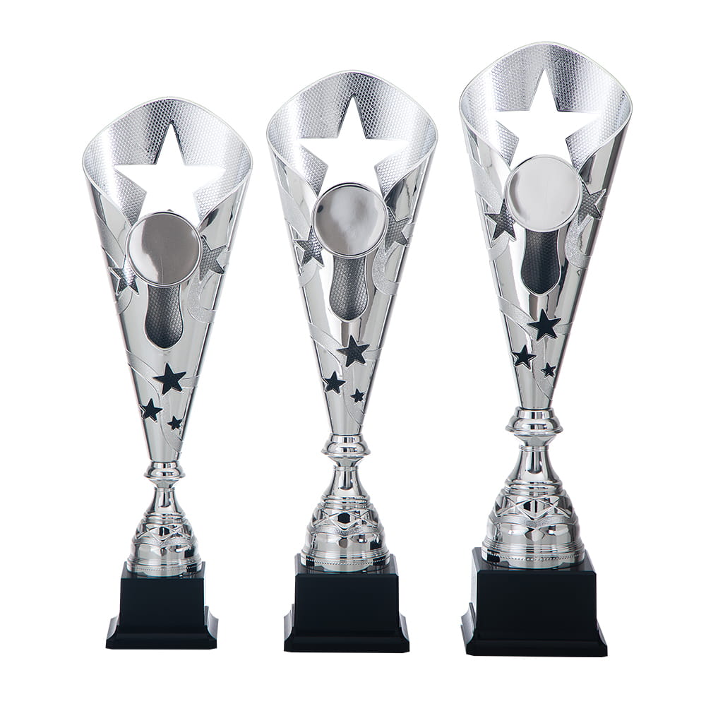 Kunststof trofee in zilverkleur met uitgesneden sterren.