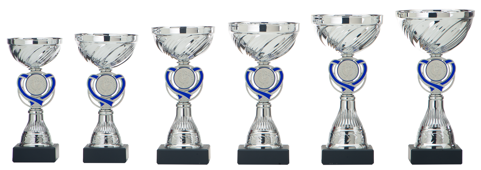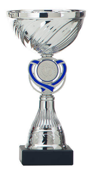 Beker in zilverkleur met zilverkleur kunststof tussenstuk met blauw accenten.