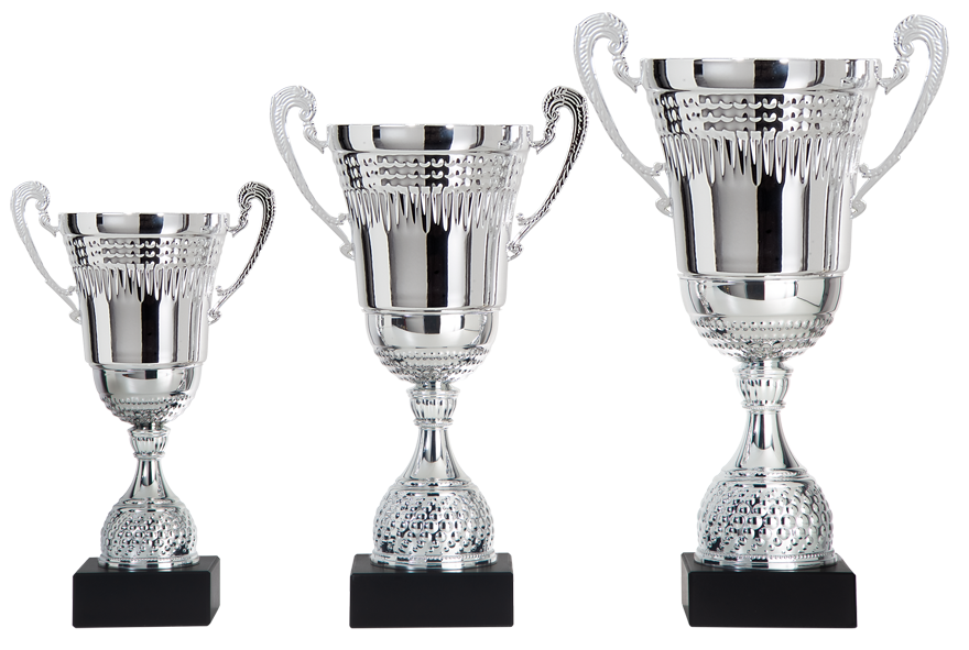 Zilverkleurige beker met metalen cup en kunststof onderstuk.