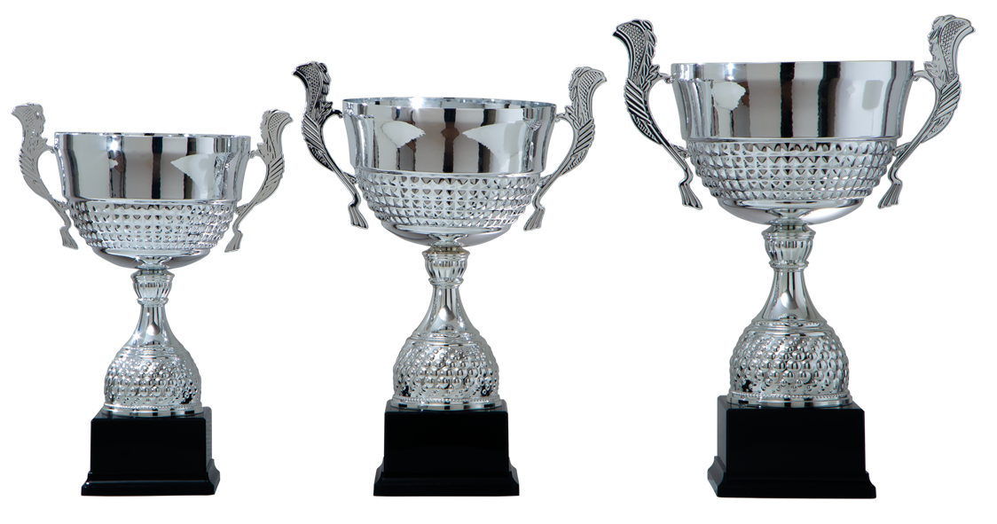 Zilverkleurige beker met oren en open cup.