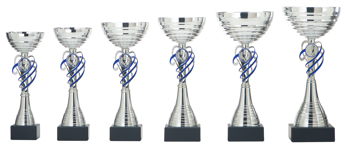 Beker met metalen cup, zilverkleurig tussenstuk met blauw accenten.