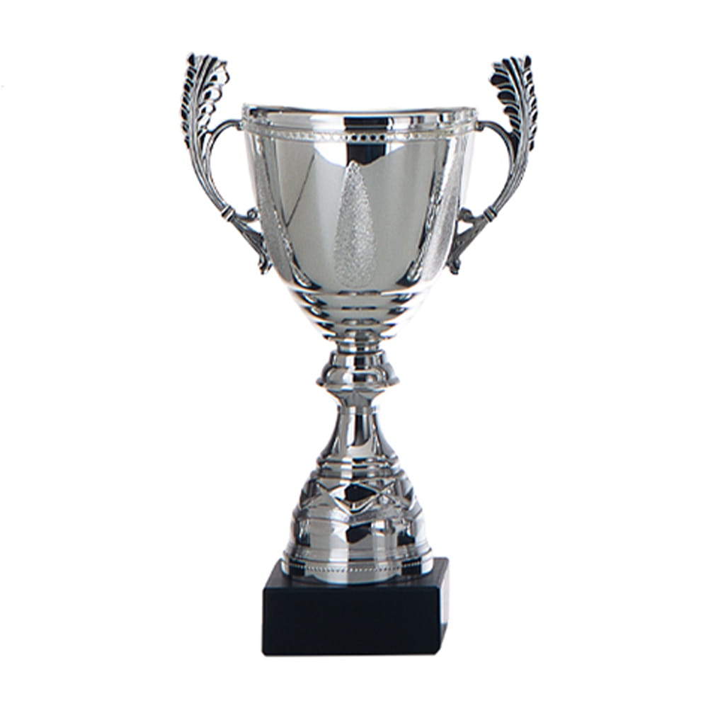 Beker in goudkleur, metalen cup en oren, kunststof tussenstuk.