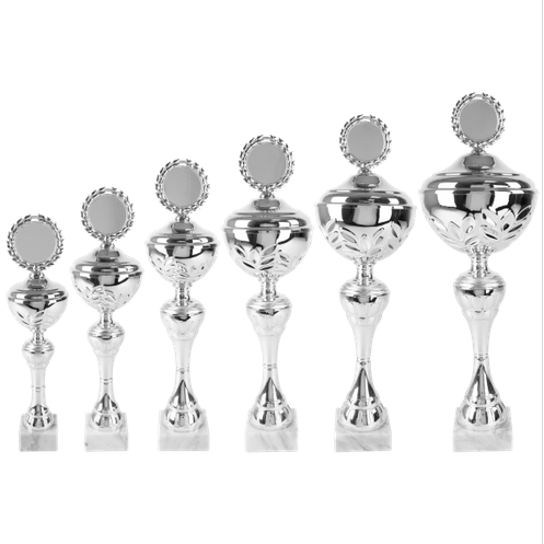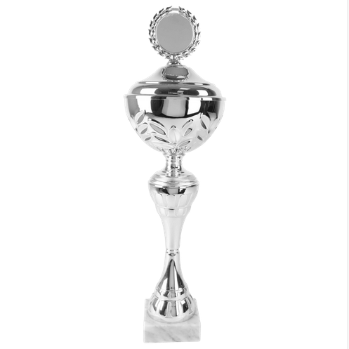 Beker in zilverkleur met kunststof tussenstuk, metalen cup en deksel.