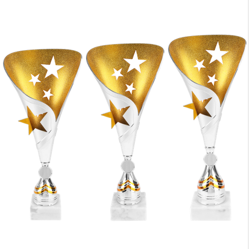 Kunststof trofee in zilverkleur met goudkleurige binnenzijde