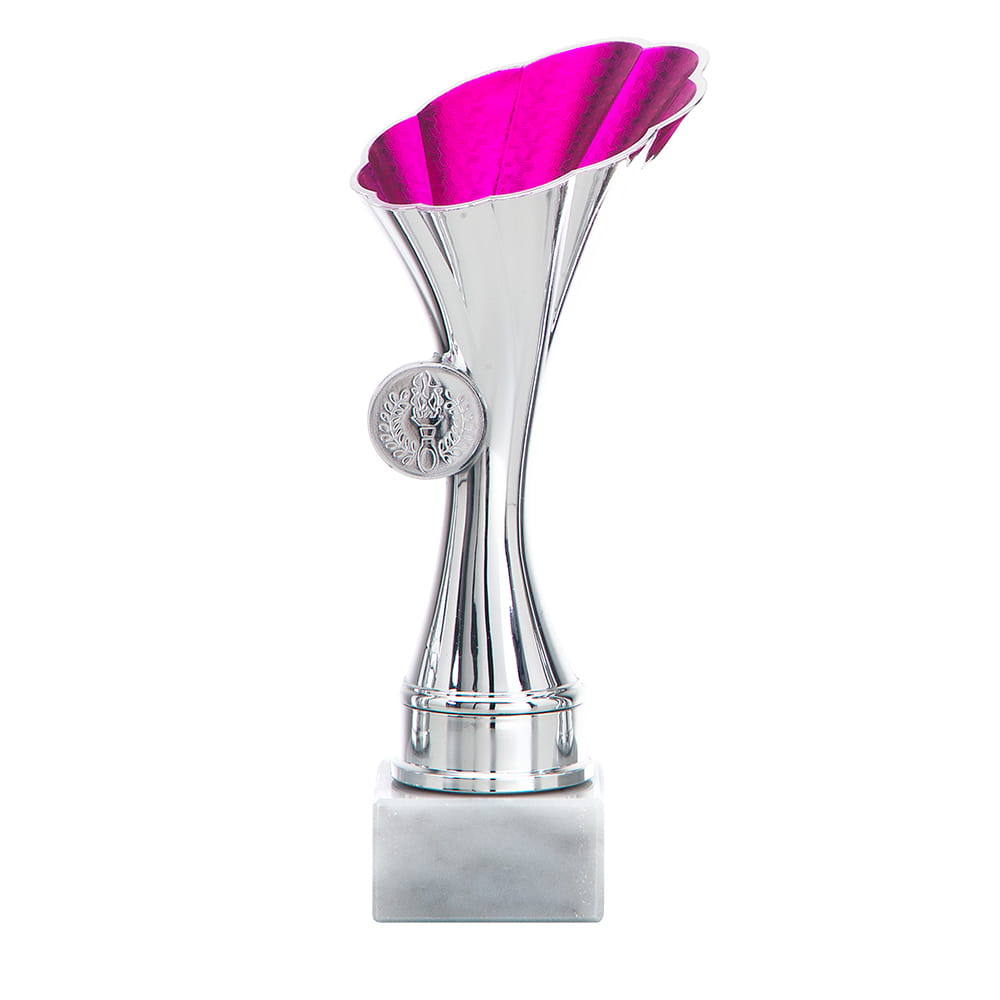 Kunststof beker in zilverkleur met goudkleur binnenzijde.