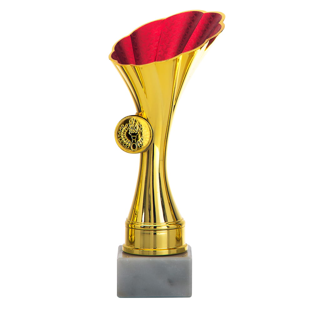 Kunststof beker in gourdkleur met rode binnenzijde.