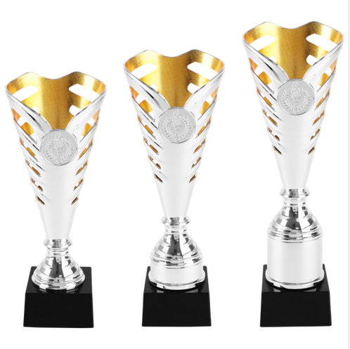 Kunststof trofee in zilverkleur met goudkleur binnenzijde.