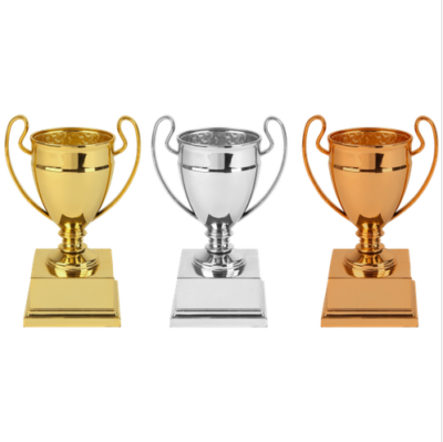 Kunststof beker verkrijgbaar in goud-, zilver- of brons kleur.
