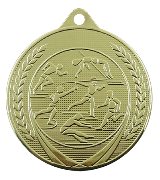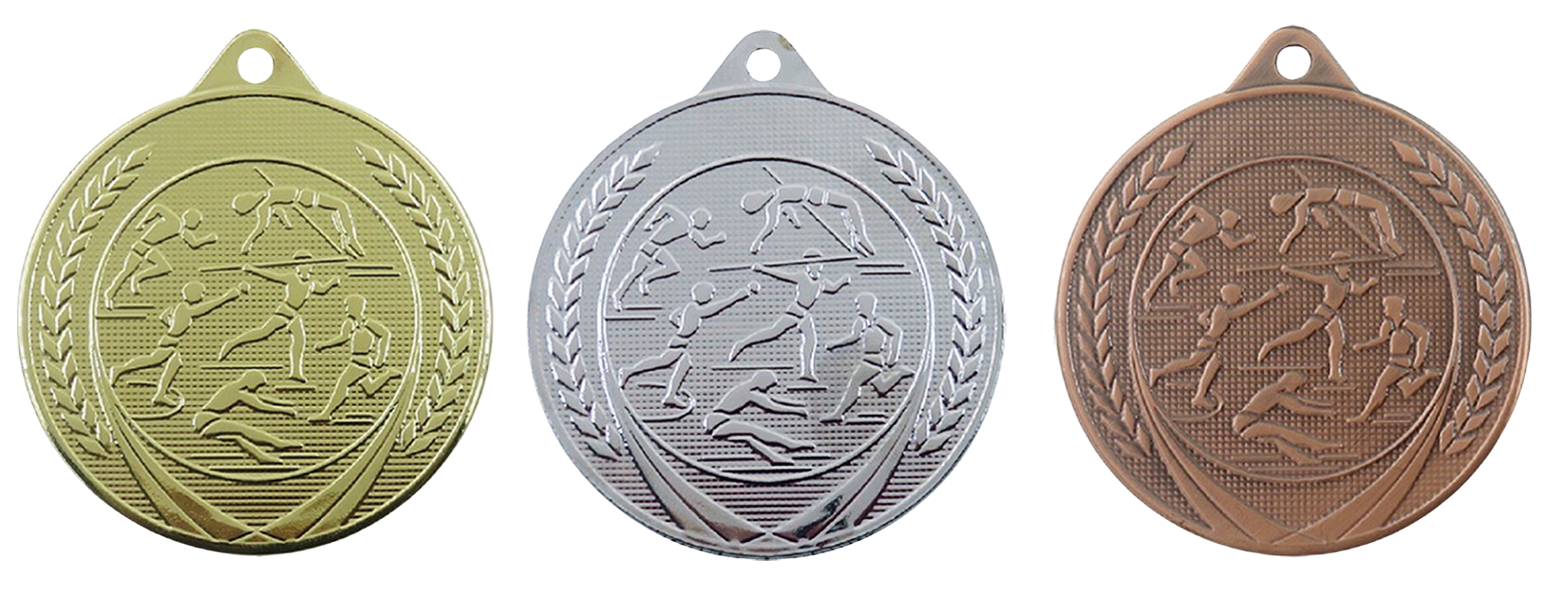 Medaille met athletiek afbeelding.