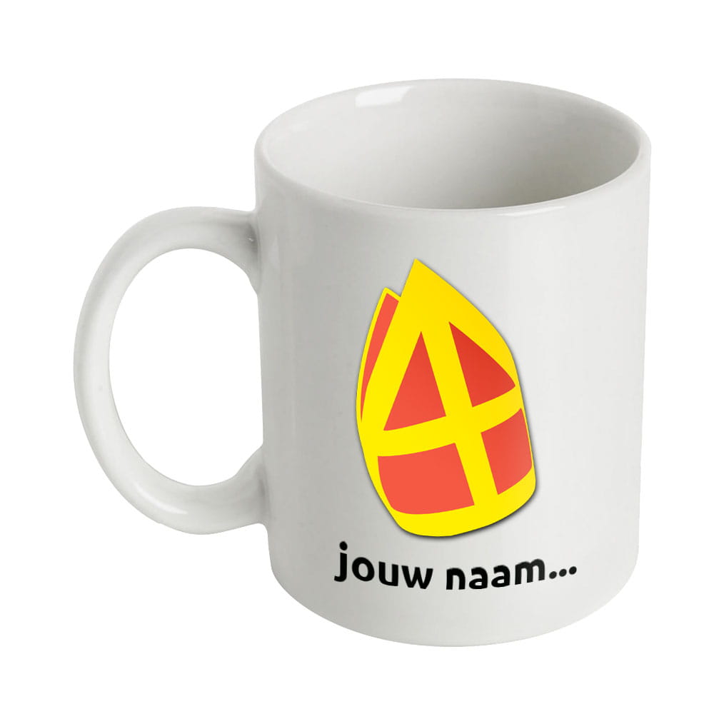 Bedrukte persoonlijke mok met je naam en Sinterklaas logo.