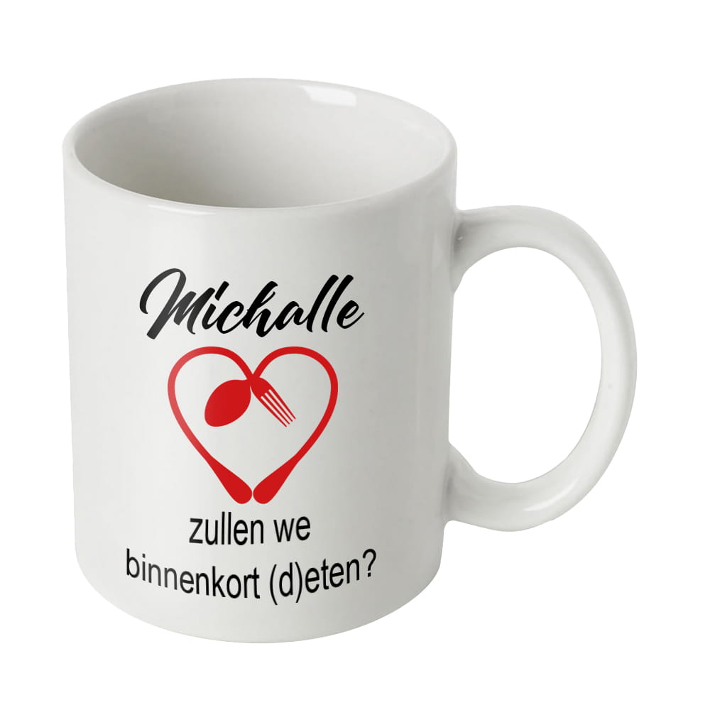 Bedrukte Valentijn mok, gepersonaliseerd met naam.