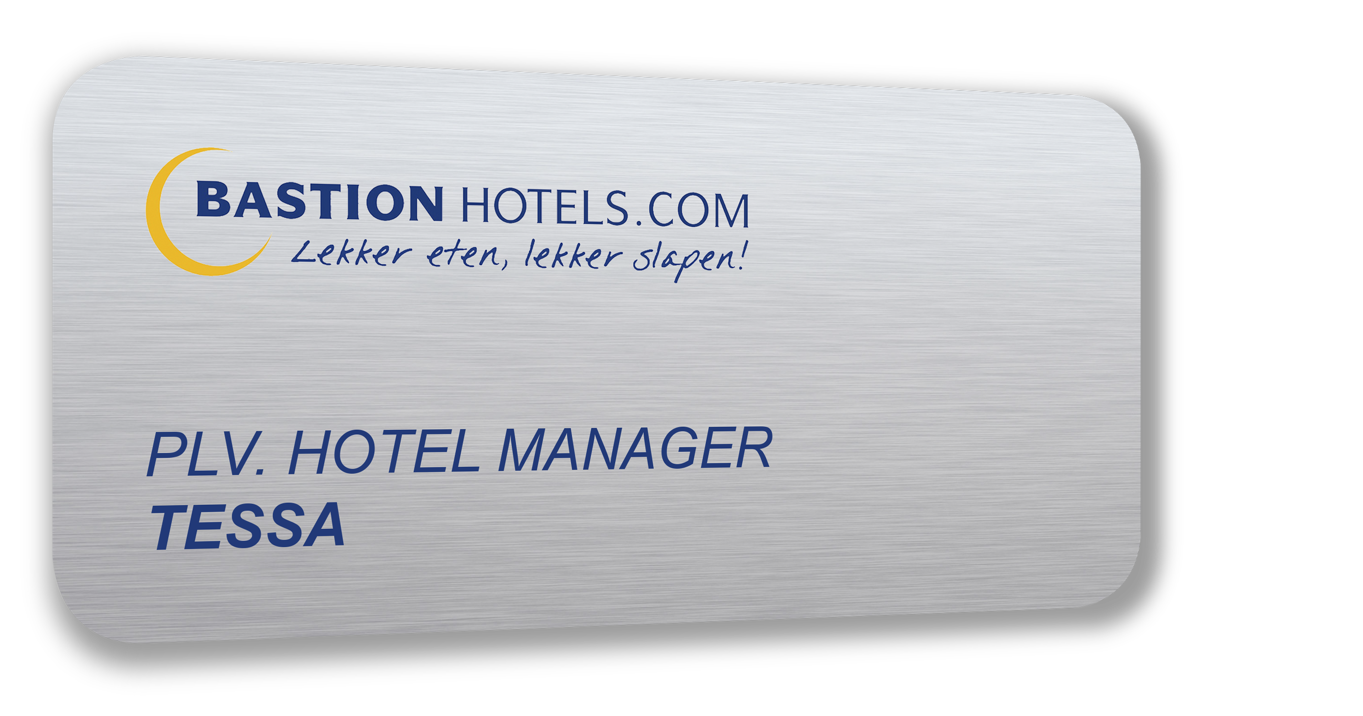 Naambadge € 7,25 p.st. Inclusief magneetsluiting.